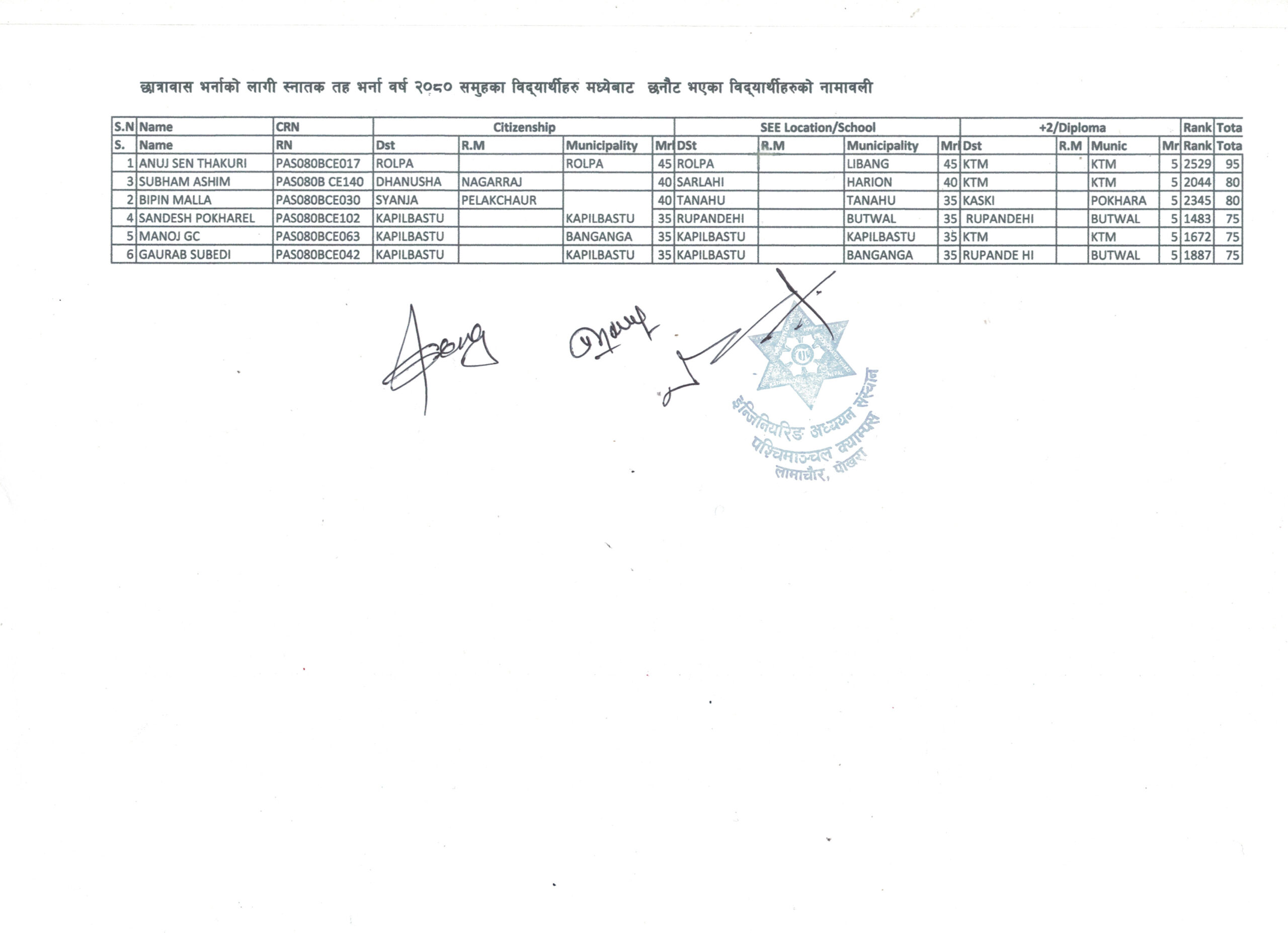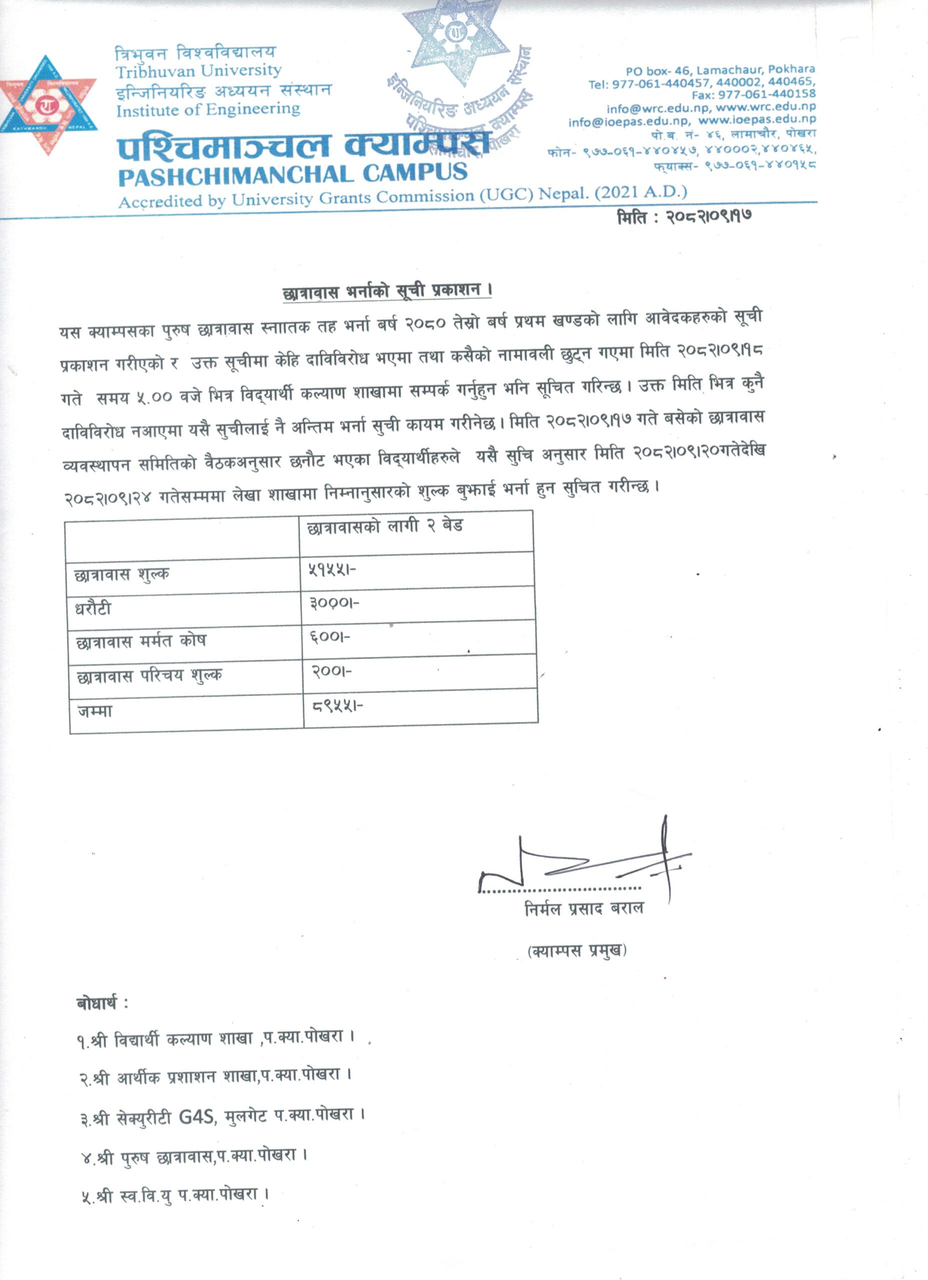 छात्रावास भर्नाको सूची प्रकाशन